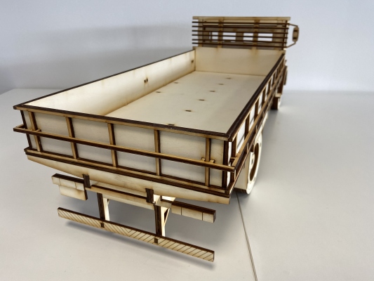 Alle Bauteile sind so gelasert, dass es eine „schöne“ Vorderseite und eine herstellungsbedingt leicht angerußte Rückseite gibt.